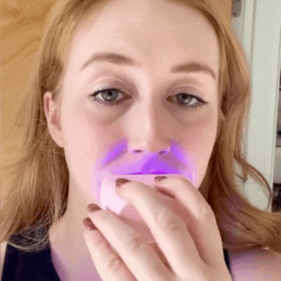 The U-shaped mouthpiece uses ultrasonic vibrations to clean all tooth surfaces at once. Just apply toothpaste, insert it into your mouth, press the button, and let it do the work in seconds.